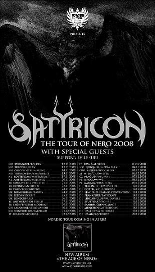 Jako každý rok nastal adventní čas plný ošklivých blikátek všude možně a nás zhruba po dvou letech opět přijeli navštívit norští velikáni Satyricon. A i když o pár měst dál zrovna hráli neméně slavní krajané Enslaved, návštěvnost v pražském klubu Futurum byla (k mé zlosti) více než velká. Sedmého večer jsem se tedy dopravila na místo, kde jsem shledala, že místo tří avizovaných kapel dojeli pouze dvě, a to zmínění Norové a švédská death metalová kapela Zonaria, Britové Evile nevímproč odpadli. Což ale samozřejmě spousta lidí kvitovala s povděkem, neboť hlavní hvězda díky tomu získala trochu více času, takže z toho byly skoro dvě hodiny satyrikoního black’n’rollu.