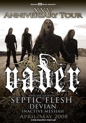 Nesčetněkrát se oči zalily slzami smutku v okamžiku, kdy média vyřadila švédské Devian z turné. Ovšem to bychom nebyli my, kdybychom se nepřesvědčili sami a nenapsali přímo kapele. Jak velké bylo překvapení, když samotný Tomas o žádném zrušení nevěděl a ještě nás pozval na show? Po tomto mailu přišla další dobrá zpráva, a to od kapely Septicflesh. Ti se měli objevit pouze u našich slovenských sousedů a z neznámých důvodů dojeli i k nám – do Česka. Měli představit zaručené vály z „Communion“ a užít si své zmrtvýchvstání. Celému turné však vévodili polští matadoři Vader, jež oslavují úctyhodných 25 let své existence. Vader = kvalitní masakr. Čtvrtou kapelou do party se stali další nadějní Řekové – Inactive Messiah, a tak se bylo určitě na co těšit. Ostatně, nechat si ujít Devian s Legionem v čele by byl velice těžký a neodpustitelný hřích!