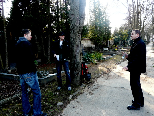 Další problém nastal při hledání místa. Naše vytipované lokality byly nakonec příliš hlučné nebo pro rozhovor nevyhovující. Až po procestování velké části Brna, včetně navštívení katedrály sv. Petra a Pavla, jsme se usídlili na Ústředním hřbitově, místě, které Koronasovi vyhovovalo nejvíce.