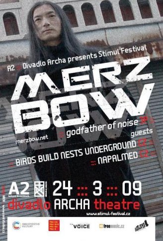 Každý, kdo to myslí trochu vážně s extrémnějším pojetím muziky, musel někdy slyšet o pojmu hlukové hudby – noise(u) a jejím nejdůležitějším zástupci, panu Masami Akitovi, jenž si říká Merzbow. V Arše se v rámci festivalu Stimul konal skutečný svátek extrému, jelikož to je poprvé, co Merzbow k nám do republiky zavítal. Za podpory domácích matadorů Napalmed, nadějných Bird Build Nests Underground (dále BBNU) a hravých Rafanů, mělo jít o skutečně nabušený večer.
