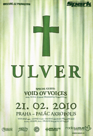 To, že sa ULVER snáď nikdy neobjavia naživo je už dávno predmetom zabudnutých pivných debát. U nás sa zúčastnili minuloročného Brutal Assaultu, a už približne v tej dobe nebolo ani ich súčasné európske turné žiadnym tajomstvom. Fakt, že medzi zastávkami figurovala aj Praha (poprípade Viedeň) tu bol nepochybne veľkou správou pre širokú divácku komunitu; od fanúšikov metalu, cez art rockerov až po rôzne avantgardne ladené duše. Zároveň však určite nie je nutné opakovať to, aké rozporuplné boli reakcie na vystúpenie týchto Nórskych vizionárov v rámci vyššie menovaného festivalu. Ja len pridám svojich pár centov s konštatovaním, že patrím skôr medzi tých, ktorý sa s „novou“ tvorbou ULVER dlhší čas nevedel stotožniť, ale práve to bol ten správny impulz, ktorý mi k ním ukázal cestu.