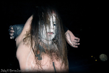 Po desáté hodině nastala nejdelší pauza. TAAKE měli sice nazvučeno hnedle, ale jako pravé hvězdy večera si dali trošku na čas. Osobně si myslím, že to bylo z důvodů, aby se prodalo více piva, neboť večer vážně strašně rychle utíkal a lidé se spíše věnovali kapelám, než doplňování tekutin :-D. Přibližně o půl jedenácté se na pódiu objevil Aindiachaí a Tundra a začali zahřívat struny. Mezitím přiběhl baskytarista V'gandr následovaný bebeníkem Thurzurem. Sotva zasedl za svou bicí soupravu, na pódium jako uragán vlítl samotný Hoest a rozjelo se neskutečné peklo v podobě skladby "Voldekt". Po extra staré pecce "Tykjes Fele" následovala novinková "Umenneske" a vzápětí druhá skladba z desky "Hordalands Doedskvad". Dokážete si tedy představit, jaké peklo se v tu dobu na Favále odehrávalo. Naivně jsem si myslel, že to bude radost vyfotit si Hoesta do půli kalhot, potetovaného a s kontaktními čočkami. Ale šeredně jsem se mýlil. V kotli se totiž tak usilovně pařilo, že první řady spíše připomínaly davové lynčování, než co jiného. Čelil jsem tak pachu potu, stříkajícímu potu a nesčetným nárazům rukou, ramen, kolen a dalších částí těla. Vystoupení TAAKE bylo natolik intenzivní a vyčerpávající, že když dohráli poslední skladbu ("Vid I"), rozloučili se a odešli z podia, nikdo ani nežádal nějaký nášup. Jednak TAAKE zahráli tak skvělý set, že nebylo potřeba, ale hlavně byli všichni natolik vyflusnutí, že by další skladbu asi ani nezvládli. TAAKE zahráli skladby ze všech zásadních desek a pokud se nemýlím, dokonce si střihli i krátkou cover verzi skladby "A Lost Forgotten Sad Spirit" od BURZUM.