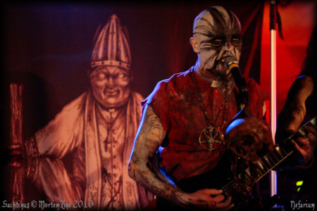 Časový harmonogram sliboval jen desetiminutové pauzy mezi jednotlivými kapelami. Což je samozřejmě velice příjemné, koncert měl skončit těsně před dvanáctou hodinou večerní. A skutečně po necelých deseti minutách se na podiu začíná něco dít. Všímám si pohybu několika italských rarachů v čele s Carnifexem. Na řadě nemůže být nikdo jiný než NEFARIUM. Doma sice jejich muzice nijak extra neholduji, ale rád se podívám v jaké formě nyní koncertují. Pompézní nástup je opět utopený v rozhozeném zvuku. Blastbeaty zní jako jeden mohutný hučící hluk a jediné, co jde z bicích rozeznat, jsou činely. Rychlejší pasáže však neprospívají ani kytarové hře, která lehce splývá. Pomalejší pasáže jsou už v pohodě. Během dalších skladeb se to ještě lehce zlepší, ale skutečný šok přichází až na konci. Nevím, zda zvukaři zkoušeli nervy posluchačů, či zda byli ožralí nebo prostě jen nahluchlí, ale konec setu NEFARIUM byl otřesným příkladem odfláknuté práce zvukaře. Basa začala vystupovat tak na povrch, že ubila vše ostatní. Kytary lítaly nahoru a dolů a při poslední skladbě je tedy radši ani nepustil. Několikrát jsem z davu zaslechl: „Co to, kurva, je?" a podobné nechvalné fráze na adresu zvukařů. Můžeme být však rádi, že začátek setu byl v porovnání s jeho koncem v pohodě. Naštěstí nikdo z členů kapely si špatného zvuku v hledišti nevšiml (jak by taky mohl, že?), takže alespoň jejich výkon a nasazení nemělo chybu. Carnifex nezklamal. Opět odehrál set ve svém rudém šatu s typicky šíleným malováním. NEFARIUM jsem viděl podruhé živě a kdyby nebylo tak špatného zvuku, rozhodně by to bylo lepší vystoupení. Takto bude jejich premiéra nepřekonaná...