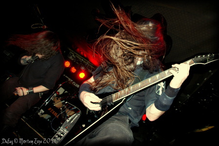 Blížilo se k deváté večer a na pódium se konečně začali chystat GORGONEA PRIMA. Hogath a Tyrael překvapili již svou image! Androidně vyhlížející bílé brnění a netypické malování ve světlech zářilo a evokovalo vzácná vystoupení Aborym. I když GP vystupovali první, nestrádali ultra krátkým hracím časem. A tak představili jak skladby z EP-ka „Behind the Border of Abnormality“, tak i ty nové, jenž se objeví na chystaném albu. I když se na kapelu přišla podívat jen hrstka lidí (čti: většina přítomných), dostalo se jim, na můj pocit, slušného přivítáni a potlesku. GP snad jen trochu dojeli na zvuk. Po většinu setu nebyly kytary téměř vůbec slyšet, z repráků se linuly jen samply a vokál. Vzhledem k jejich kvalitě se však nejednalo o nepřekonatelný průser.