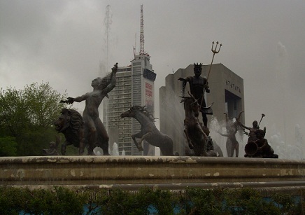 Naším dočasným domovem se stává Hotel Centro. Jsme překvapeni jeho elegantním vzezřením i luxusním vybavením. Kdo se chce dospat, ten může, všichni z kapely se ale po sprše cítíme tak svěže, že jednohlasně souhlasíme s prohlídkou města, které vypadá celkem kulturně a vyspěle. Dosud bylo po celou dobu našeho pobytu v Mexiku horko a sucho. Slunce pražilo na kapotu auta a nebýt klimatizace, tak bychom se v něm asi uvařili. To se však dnešním dnem mění. Vítr se zvedá, obloha se zatahuje, zbloudilé kapky se tříští o dlažbu monterreyského náměstí…a my jsme samozřejmě u toho. Slunečný den by každý z nás určitě uvítal více, ale z cukru také nejsme a poctivě si procházíme kulturní centrum města.