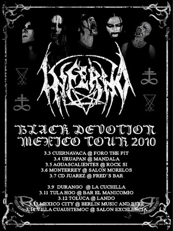 Jenže lidi tady v Mexiku jsou asi zvyklí chodit později, a tak po krátkém šlofíku v útulném backstage jdu opět zhodnotit situaci a to už pod pódiem postává slušný hlouček lidí a odměňuje jakousi blackmetalovou sebranku potleskem a hvizdem. Po dalších dvou vystoupeních už je v klubu rušno a nahuleno a do tohoto prostředí se šineme na pódium my. Cd s intrem nám včera někdo šlohnul, a tak nezvykle začínáme „Epilogem“ a pak už klasický set sestávající především ze skladeb z posledního alba „Black Devotion“. Stoly jdou stranou, začíná zábava. Koncert má nakonec výbornou atmosféru, která je intenzivnější s každou srážkou těl dole pod pódiem. Po vystoupení ale večer zdaleka nekončí. Do našeho backstage se společně s námi hrne dalších patnáct lidí a my zpocení a zmalovaní poskytujeme rozhovor do jakéhosi místního rádia. Nikdy bych si nemyslel, že může být půl hodiny odpovídání na otázky v cizím jazyce tak vyčerpávající. Ale bylo a po oné půlhodince toho máme plné zuby. Kromě toho David spěchá, protože do Monterrey je dlouhá cesta a v tuto chvíli jsou tři hodiny ráno. Už tedy ani nejedeme hledat nějaký hotel a rovnou vyrážíme na cestu do Monterrey, která do naší kilometrické banky přidá dalších více než 450 jednotek.