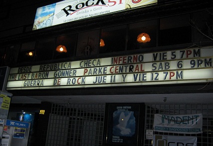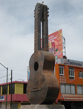 V odpoledních hodinách se vydáváme na cestu, na jejíž časové rozpětí se raději neptáme. Vlastně ani není moc hodin, tak není kam spěchat. Koncerty tu začínají často až po desáté hodině, takže žádný stres. Zvlášť když projíždíme městečkem Paracho, věhlasnou baštou výroby kytar různých druhů, kde se fotíme u obří kytary - španělky. Před klubem v Aguascalientes parkujeme krátce po osmé hodině a pomalu vcházíme do jeho útrob. První dojmy z prostor, kde se má odehrát náš další koncert nejsou moc příznivé. Sice pódium ok, aparát ok, bicí základ ok, ale návštěva čítající deset hlav a kavárenské parametry klubu včetně malých stolků hned pod pódiem nevěstí nic dobrého. I v průběhu setu první kapely zhruba o hodinu později vypadá situace podobně. Pár lidí rozesetých u stolků, mezi nimiž servírka roznáší objednané crossainty, nejeví kromě občasného pokyvování hlavou žádné známky headbangingu, a to první banda začala pěkně zostra.