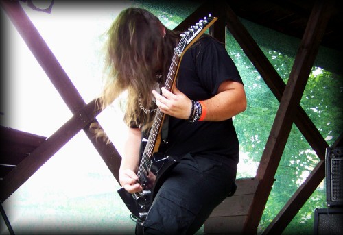 Následují dvě skupiny, na které jsem do Volyně opravdu nepřijel. KAOSQUAD, jediná kapela čítající méně než čtyři členy. No, co už, na death-grindovou hudbu to nejspíš stačí. Zde ode mě nemůžete čekat nějaké objektivní vyjádření, já tomuhle stylu příliš nerozumím. Ano, byl to nářez, při kterém si s chutí umlátíte palici, ale nic víc. Kapela byla nicméně velmi fotogenická a jejich hrací čas se trefil do nejlepších světelných podmínek. Jal jsem se tedy na chvíli přestat házet hlavou a udělat pár fotek. Snad se povedly.