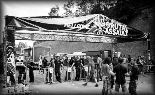 Začněme tedy pěkně popořadě. Letos jsem dorazil už ve středu, abych předešel každoročnímu shonu. Jednak jsem si chtěl pobyt v Josefově prodloužit a hlavně se ve čtvrtek začínalo už ve 12, což je oproti minulým ročníkům první změna. K mému překvapení bylo už kolem čtvrté hodiny všude spousta lidí. I tak jsem však čekal, že vše půjde, jak má. Po postavení stanu, vybalení a prvních náležitostech jsem vyrazil pro pásku. První „výmrd“ na sebe nenechal dlouho čekat. Kvůli tomu, že byly v oběhu zachyceny falešné vstupenky, musel každý, kdo ji měl z předprodeje, projít tzv. autorizací vstupenky. Ta spočívala ve vystání tříhodinové fronty, aby na jejím konci jeden ze dvou lidí vstupenku vzal, podíval se skrz ni proti světlu a dal vám na ní razítko Brutal Assault. Alespoň tak to probíhalo u mě. Někomu prý lístek skenovali, ale to jsem skutečně nezaznamenal. Pak jste mohli vyrazit do další fronty – pro pásku. Osobně nechápu, proč toto odbavování dělalo tak kriticky málo lidí a proč to nemohli dělat osoby přímo u páskování. Zkontrolovat vstupenku zvládne i cvičená opice. Nemluvě o těch nebožácích, co stáli hodinu na pásku a pak jim bylo oznámeno, že nemají vstupenku potvrzenou. Takže šup do tříhodinové fronty a pak ještě jednou do té, kde stáli doteď. Ještě, že si mě všimli přátelé z konkurenčního zinu a umožnili mi si stoupnou k nim. Tím jsem ušetřil víc jak dvě hodiny. Tímto je tedy zdravím!
