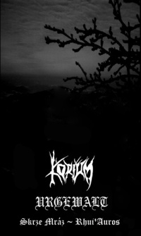 Od Koronase jsem obdržel dvou skladbový split a prosbu o jeho zrecenzování. Nese jméno „Skrze Mráz/Rhui'Auros“ a je od 11. listopadu k dostání skrze Suicidal Taste prod., a to pouze na klasické kazetě, striktně limitované na 66 kousků. O tomto vydání se dozvíte prakticky pouze na oficiálních stránkách KORIUM a URGEWALT. A nyní samozřejmě i u nás. „Skrze Mráz“ je patnáctiminutovým opusem v klasickém Koronasově stylu. Typický zvuk i stavba skladby neutíká nijak daleko od předešlých počinů. Pod tíhou chladných nosných riffů a husí kůži nahánějících kláves se ozývají tíživé, agónií prostoupené výkřiky. U starších počinů mě nikdy toto přirovnání nenapadlo, ale chvílemi mi „Skrze Mráz“ svou mrazivou atmosférou, klávesovými plochami, automatickým bubeníkem a samozřejmě i zmíněným „až z paty“ se táhnoucím vokálem připomíná švýcarské trio Darkspace. Tím bych samozřejmě nechtěl nějak rozbouřit ničí představy. Jen mi to přišlo na mysl během nočního poslechu. Tento pocit se mi dostavil během šesté minuty, kdy riffy gradují obdobným stylem. Zde ale končí veškerá podobnost. Jinak jde samozřejmě o klasickou Koronasovu práci, plnou trýznění, deprese a samoty. Skladba po dvanácté minutě utichá a přechází v ambientní zakončení, na které následně naváže „Rhui'Auros“.