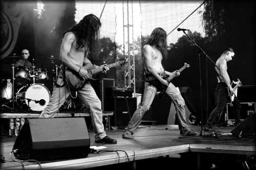 V severočeském kraji dobře známá kapela z Ústí nad Labem – WYRM s ženskou kytaristkou na sebe nenechala dlouho čekat a rozjela na nás „sypačkoidní“ black metaly. Totálně zmožený vedrem jsem nevydržel stát pod pódiem příliš dlouho a čas od času jsem si musel jít pokropit hlavu. Pozoroval jsem je hlavně ze stínu starých vrb, kde se křížily cesty dalších sluncem spálených lidí, jelikož před pódiem by to byla sebevražda. V tudle hodinu prostě ne.