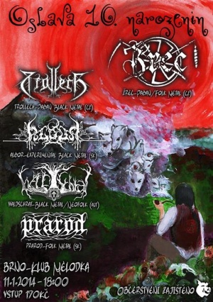 Do narvané Melodky jsem dorazil chvilečku po šesté. Ani jsem nečekal, že by se již začalo hrát a já tak přišel o začátek. Po samozřejmém občerstvení jsem se vydal prodírat davem, abych sledoval chystání první kapely večera, kterým sice měla být slovenská úderka PRAROD, ale nakonec to byli taktéž slovenští ALGOR, kteří otevřeli koncertní večer. Jejich novinka „Hierofánia“ hraje v mém přehrávači v současnosti pořád. Byl jsem zvědavý, jak se ALGOR podaří přenést ji na koncertní kolbiště. Po úvodní instrumentálce „… A posvátno sa prejavuje“ nastalo ticho, kdy jsme obě strany (jak kapela, tak publikum) netušili, co se bude dít. Nikdo nezatleskal, čekajíc všechno možné, ne však ticho. Nicméně po rozpačitém začátku do nás natlačili podstatnou část novinky v celé její kráse. Nezapomněli ani na starší věci, tudíž si i ti, co novinku ještě neslyšeli, přišli na své. Melodický pagan black s ezoterickým podtónem fungoval tento večer na jedničku. Jen bych kapele vytknul nulový pohyb na pódiu. Možná i proto bylo publikum zatím trochu chladné.