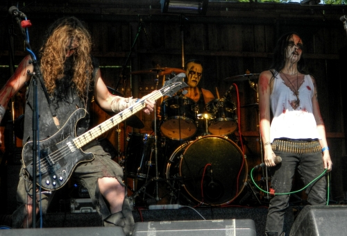 Pak přišlo na řadu další severočeské černé želízko v ohni. Osobně jsem měl tu čest poprvé a jejich vystoupení mě doslova nadchlo - vedro nevedro. Po náboženském intru přecházejícím v černou řeč se z úst zpěvačky ozval výkřik: KRAAKE a areál byl naplněn severským black metalem, plným mocných „uh!“. Kapela se vyzdobila painty, z přídavných zařízení se valil na scénu kouř. Pro mě rozhodně jedno z nejlepších vystoupení dne. Naservírovány nám byly také skladby z očekávaného alba „Fram“, které až vyjde, tak si ho s radostí vezmu pod svůj patronát. Třešničkou na dortu završující celou show se stala finální skladba, cover od Burzum „Lost Wisdom“, při které se přihlížející dali do pohybu. Pro pořádek doplním, že KRAAKE byli náhradníkem za zrušené vystoupení Askeregen. Náhrada to byla více než dostatečné, předvedli se s plnou parádou. Těším se na další dostaveníčko.