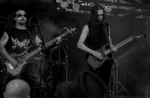 Členové 1000 Bombs se převlékli, důkladně namaskovali a už jsme tu měli další českou kapelu – TROLLECH. Hned na začátku vystoupení mě zaujal zpěv stylem dvojhlasu, kdy se oba vokalisté doplňovali a navzájem se nijak nerušili. Vystoupili, jak jinak, než „Skryti v mlze“. Zabíjelo se jiskrou v očích, jak káže album Smrt, stali jsme se rovněž součástí Koloběhu vod a do našich niter se prodrala Vnitřní tma. Lidé spíš stáli a poslouchali, menší frmol se strhnul až při poslední skladbě, která nesmí chybět v žádném setlistu TROLLECH – „Ve stínu starých dubů“, kterou jsem si zařval s nimi též.